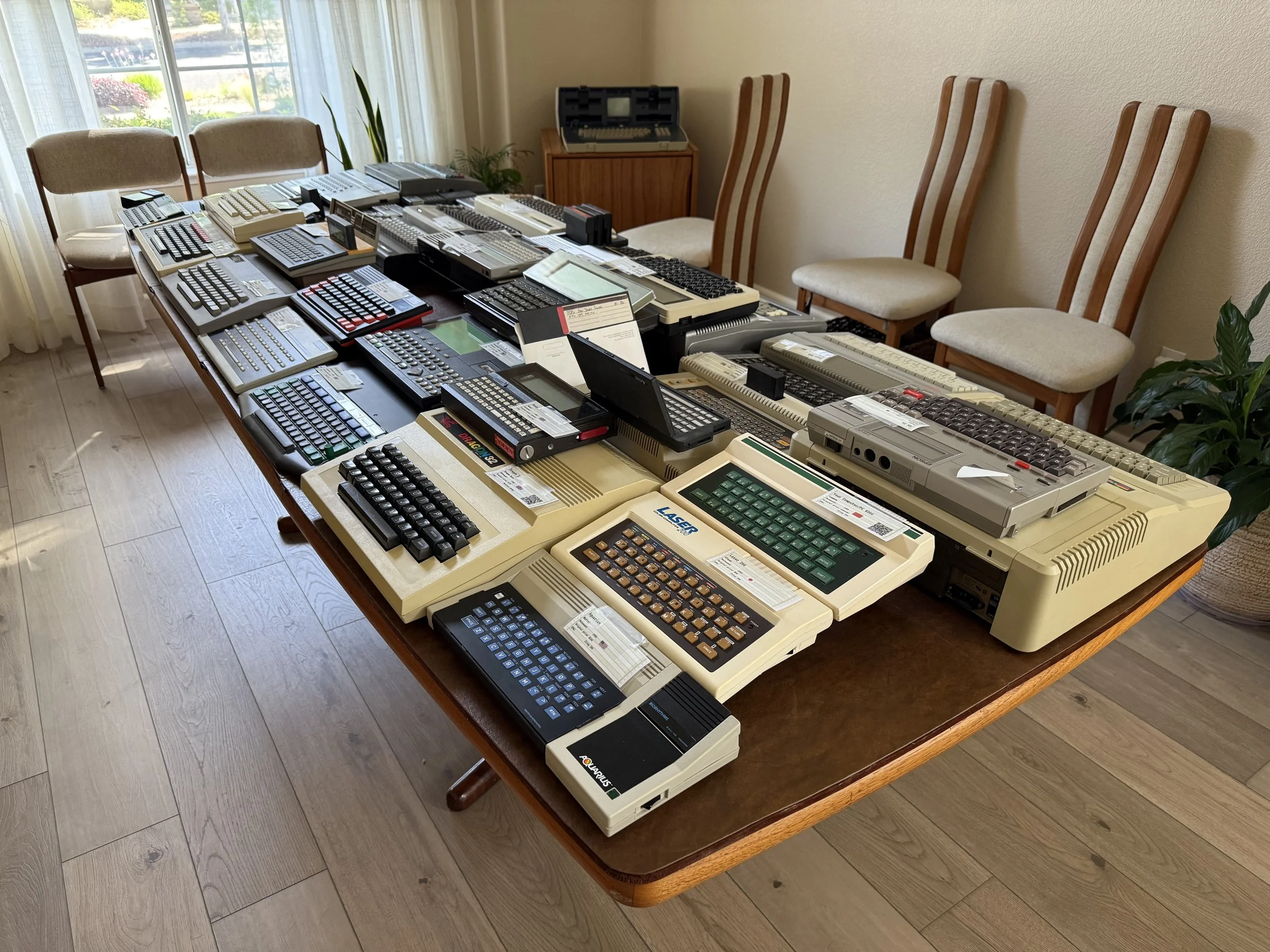 So, I retired last May, and for my retirement party, I decided to display some of my vintage computer collection. It was of interest to virtually nobody at the party, but I enjoyed setting it up. It’s only about 50% of my collection, but I tried to pick stuff that people might be familiar with, as well as some oddities. Enjoy these photos!